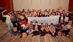 美高梅成員與50位澳門理工學(xué)院博彩與娛樂管理專業(yè)大學(xué)一年級及三年級學(xué)生合照留念。