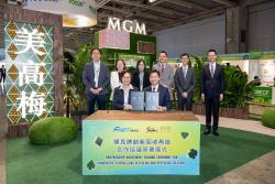 「撲克牌創新回收再造」合作協議簽署儀式於「2025年澳門國際環保合作發展論壇及展覽」(2025 MIECF)的美高梅展位舉行。美高梅人力資源及可持續發展高級副總裁李建恆及光聯世紀科技有限公司總經理黃桂玲代表簽署,並由招商投資促進局行政管理委員會主席余雨生、經濟及科技發展局副局長鄭曉敏、環境保護局環保基建管理中心主任陳國浩、美高梅人力資源執行副總裁余婉瑩、美高梅博彩業務營運及市場策略執行副總裁田焓,以及光聯世紀科技有限公司董事長黃書展在場見證。